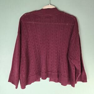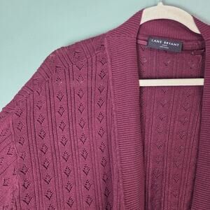 Lane Bryant Womens Classic 3/4 Sleeve Open Front Pointelle Shrug Cardigan Size 22 24 Maroon