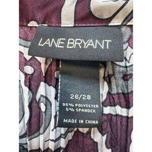 Lane Bryant Womens Crinkle Button Up Shirt Plus Size 26/28 Burgundy Gray Paisley