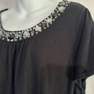Lane Bryant Womens Crystal Embellished Black Blouse 18 20