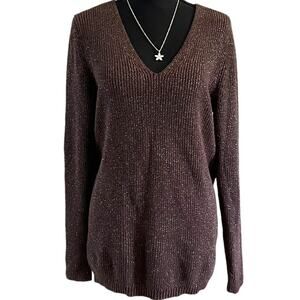 Lane Bryant Women's Dark Brown Gold Metallic V Neck Plus Size Fall Sweater 14/16