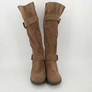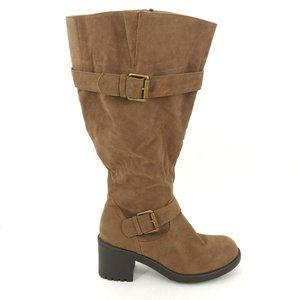 Lane Bryant Womens Dark Taupe Faux Suede Knee High Boots Zipper Accent Buckle 9W