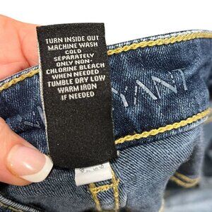 Small rip on back pocket; front to back waist = 23 inches, inseam = 28 inches