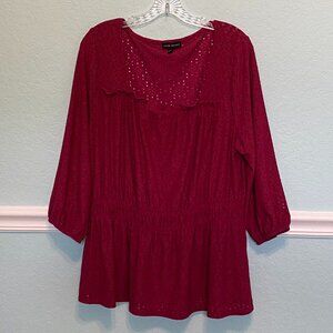 Lane Bryant Womens Eyelet Peplum Blouse Size 14/16 Burgundy 3/4 Sleeves