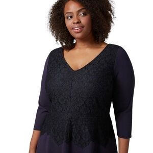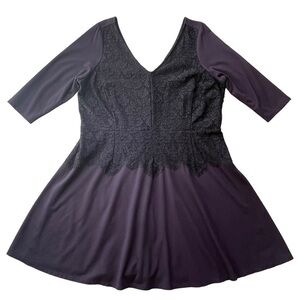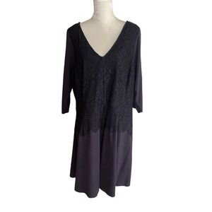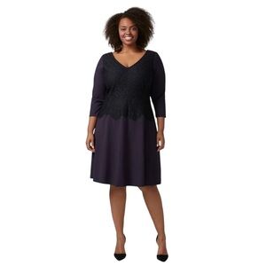 Lane Bryant Women’s Fit & Flare Dress Plus Size 22 Navy Lace 3/4 Sleeves Stretch