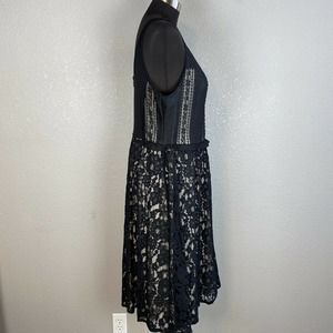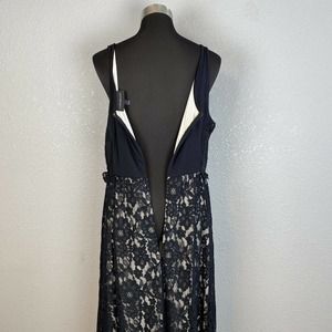 Lane Bryant Womens Flare Party Dress 14 XL Black Floral Lace Lined Sleeveless