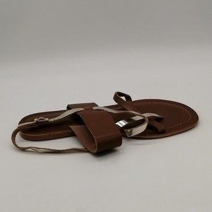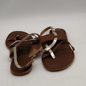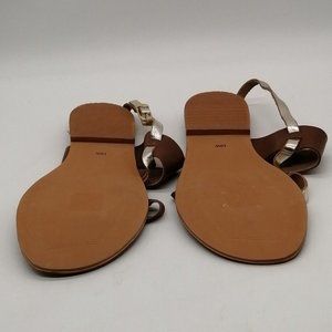Lane Bryant Womens Flat Heel Ankle Strap Thong Sandal Brown/Silver Sz 10 W