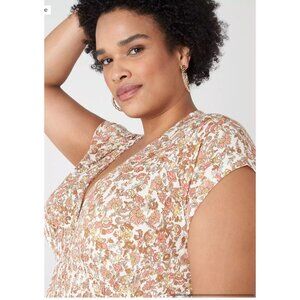Lane Bryant Womens Floral Print Midi Dress V-Neck Short Sleeve Smocked Waist Siz