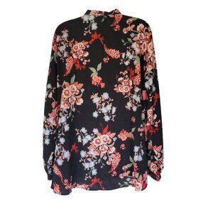 Lane Bryant Womens Floral Tie-Neck Blouse 22/24 Plus Size Long Sleeve Polyester