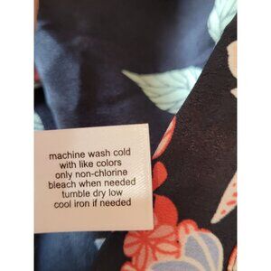 This Lane Bryant blouse offers an elegant floral design with a modern tie-neck detail, ideal for a sophisticated look. The lightweight polyester fabric ensures comfort and durability, making it suitable for professional settings.