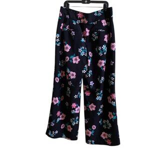 Lane Bryant Womens Floral Wide-Leg Pants Size 14 Black Pink Green Polyester Span