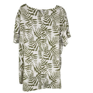 Lane Bryant Womens Flutter-Sleeve Crew Neck Top Sz 22 Olive Leaves Floral Whimsy