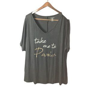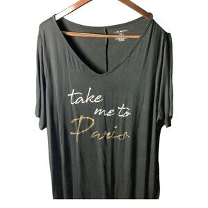 Lane Bryant Womens Graphic V-Neck T-Shirt Sz 26/28 Take Me To Paris Black Gold