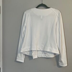Lane Bryant Womens Jacket Size 16 White Cropped Black Zipper Round Neck Pockets