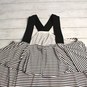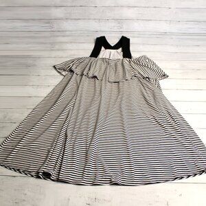 This casual pullover sundress is perfect for lazy days and going to the beach. It is black and white with layered tiers and wide elastic straps. It is in excellent hardly used condition.