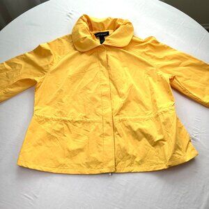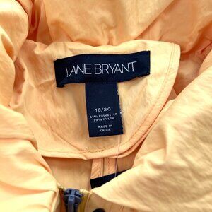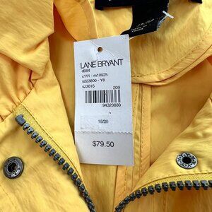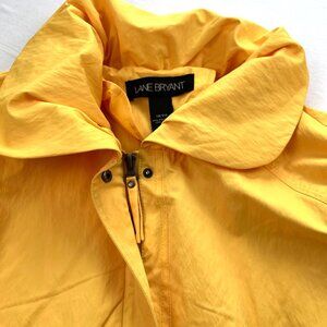 This Lane Bryant jacket combines style and functionality with its vibrant yellow color and practical design. Crafted from a blend of polyester and nylon, it offers a lightweight feel and durability. The drawstring hem and zip closure with snaps provide added convenience. This jacket is tailored for women and fits sizes 18/20.