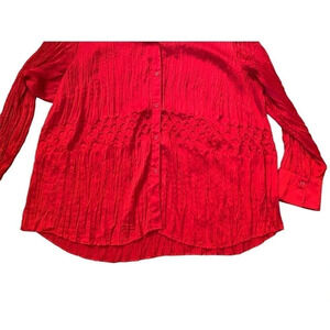 Preowned used Lane Bryant Women's Long Sleeve Red Holiday Christmas Work Casual Button-Up Shirt Size 22-24W. Perfect for the holiday season!