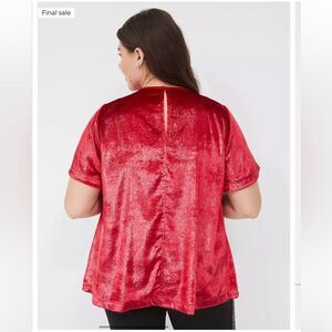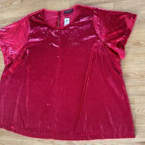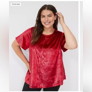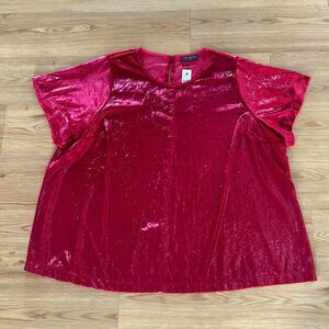 Lane Bryant Womens Lurex Boatneck Swing Top 28 Red Velvet Soft Plus Holiday New
