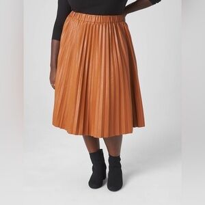 Lane Bryant Women’s Midi Skirt 3X Tan High Rise Faux-Leather Pleated Preppy