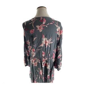 Lane Bryant Women's Multicolor Floral Print Bell Sleeve Pleated Blouse Top 18/20