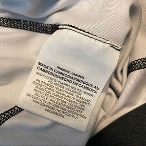 has a scoop neck and knit material made of rayon, polyester and spandex.