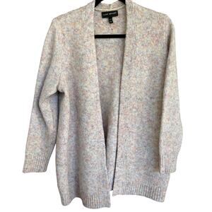 Hi everyone! I'm excited to share this lovely Lane Bryant Women's Pink Open Front Marbled Oversized Cardigan in size 10/12. It's been gently loved and is in wonderful condition—no stains or holes. Originally priced at $84, I'm open to reasonable offers. I'd be happy to combine shipping if you're interested in multiple items. Thanks for stopping by and happy shopping!