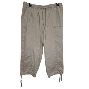 Title: Lane Bryant Women’s Plus Capri Pants 18/20 Beige Khaki Cotton Blend Drawstring Embroidered