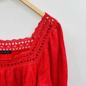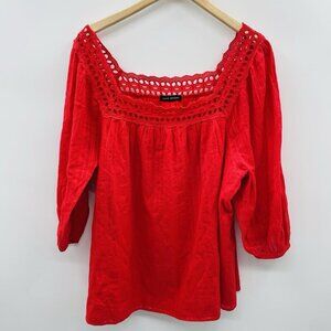 Lane Bryant Women's Plus Size Classic Square-Neck Blouse With Lace Trim in Red