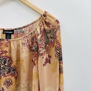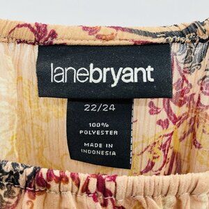 Lane Bryant Womens Plus Size 22/24 Floral 3/4 Puff Sleeve Peplum Blouse Tan 2078