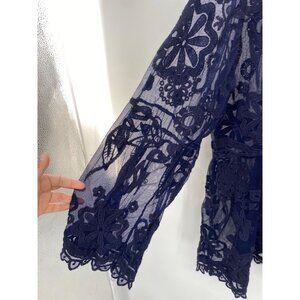 Lane Bryant Womens Plus Size 22/24 Sheer Floral Lace Button Neck Blouse