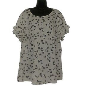 Lane Bryant Womens Plus Size 28 Ruffle Sleeve Floral Print Top Lightweight White