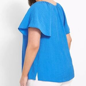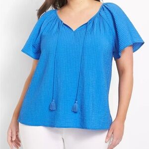 Lane Bryant Women’s Plus Size Classic Split-Neck Peasant Top Size 26/28, Blue
