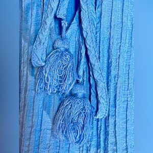This classic fit peasant top features a split neck and tassel detail in a vibrant shade of blue.