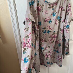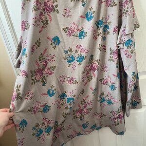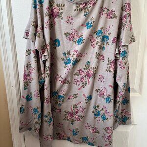 Lane Bryant Women's Plus Size Shirt Top Floral Size 26/28 Gray Blue Purple