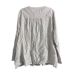 Crew neck. Button front. Long sleeves with single-button cuffs. Adjustable drawstring waist. Woven fabric. Slightly longer length is perfect for added coverage with skinny jeans and leggings.