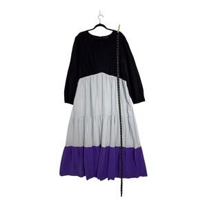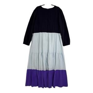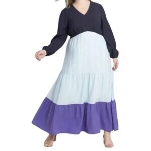 • Style: Maxi dress with long sleeves and tiered colorblock skirt
