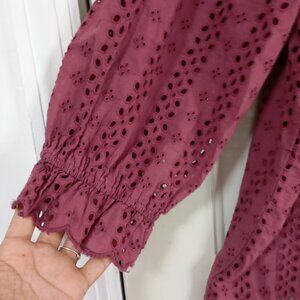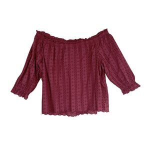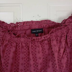 Lane Bryant Womens Plus Sz 22/24 Burgundy Eyelet Off-Shoulder Blouse 100% Cotton