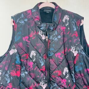 Lane Bryant Womens Puffer Vest Full Zip BLack Floral Pockets Zip Front Sz 26/28