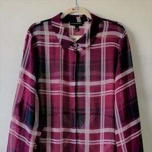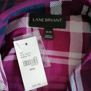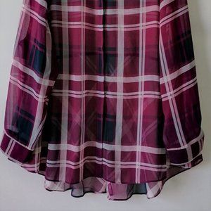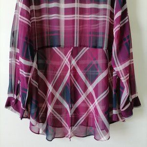 Lane Bryant Womens Purple White Plaid Sheer Button Up Tunic Shirt Size 26/28