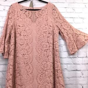Lane Bryant Women's Romantic Feminine Lace Flounce Sleeve Pink Dress Size 14P