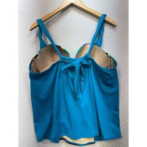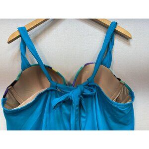 Lane Bryant Womens Ruched Swimsuit Top Size 44C Multicolor Swimwear Beach Chic