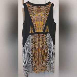 Lane Bryant Women's Sheer Lined V Neck Multicolored Aztec Print A Lined Dress