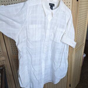 Lane Bryant Women's Shirt Dress / Tunic, White, semi-sheer fabric with pockets