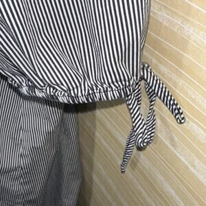 Lane Bryant Women's Short Sleeve Black & White Striped Button Blouse 18 0629