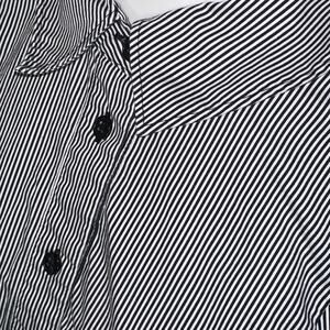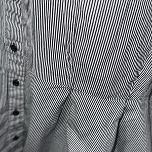 Elevate your wardrobe with this chic Lane Bryant blouse. The black and white striped pattern make it a versatile piece that can be paired with any bottom. The collared neckline and short sleeves give it a casual yet stylish look that is perfect for any occasion. This plus-size blouse is a basic staple that every woman should have in her closet.