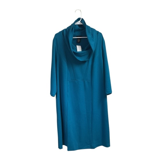Lane Bryant Women's Sheath Dress in Size 18/20W. Turquoise Color, the fabric is a Polyester Rayon Spandex Blend. Thick Material. Cowl Neckline. 3/4 Length Sleeves. Hits at about Knee Length. New with Tag. Great Condition.