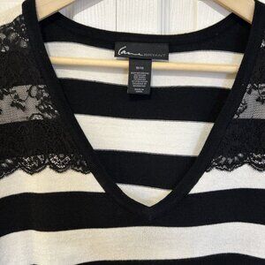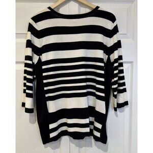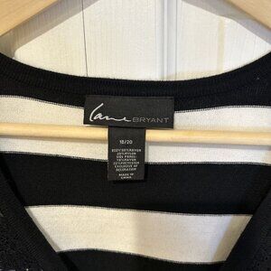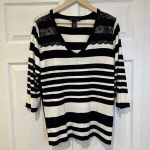 Lane Bryant Womens Sweater 18/20 Black White Lace Front Striped 3/4 Sleeve