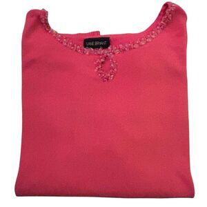 Lane Bryant Womens Sweater Size 22 Coral Sequin Bead Trim Short Sleeve Pullover