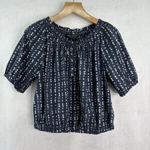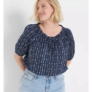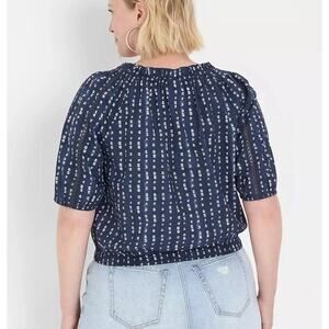Lane Bryant Women’s Sz 14/16 Navy Batik Short Sleeve Button-Down Crop Top NWT