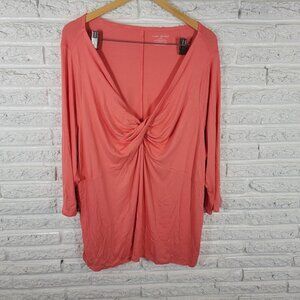 Lane Bryant Womens Top 26 28 Plus Tunic 3/4 Sleeve Orange ORA4E