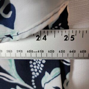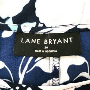 Lane Bryant Womens Top Crew-Neck Sz 20 Short Flutter-Sleeves Navy Teal & White